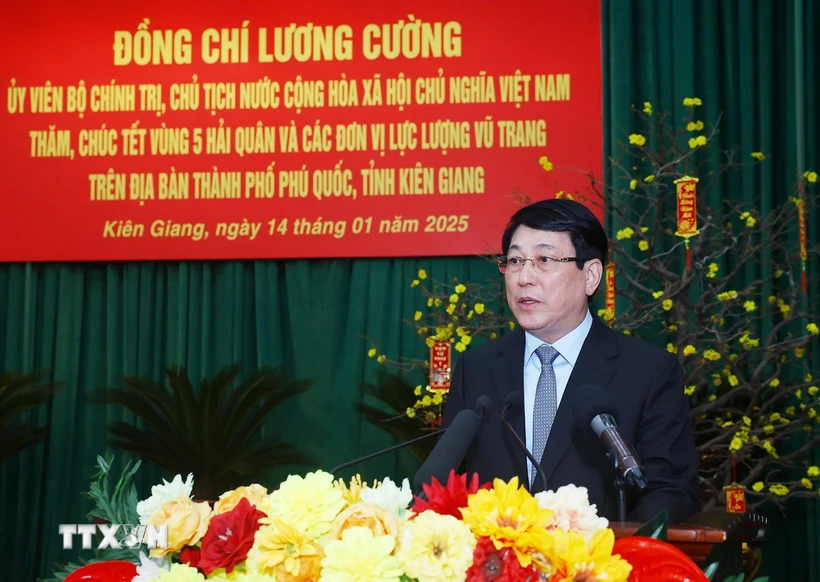 Trước thềm năm mới xuân Ất Tỵ 2025, thay mặt lãnh đạo Đảng, Nhà nước, Chủ tịch nước chúc cán bộ, chiến sỹ lực lượng vũ trang các đơn vị đóng quân trên địa bàn thành phố Phú Quốc và đang làm nhiệm vụ trên vùng biển, đảo Tây Nam của Tổ quốc một năm mới luôn mạnh khỏe, hạnh phúc, an khang, thịnh vượng và thành công.