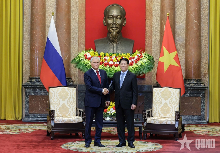 Chủ tịch nước Lương Cường tiếp Chủ tịch Đuma Quốc gia Nga