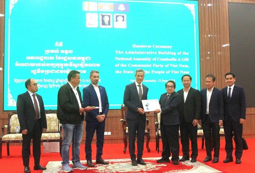 Trong khuôn khổ sự kiện, Đại sứ Việt Nam tại Campuchia Nguyễn Minh Vũ đã thực hiện nghi thức bàn giao công trình tòa nhà hành chính mới của Quốc hội Campuchia cho Tổng Thư ký Leng Peng Long.