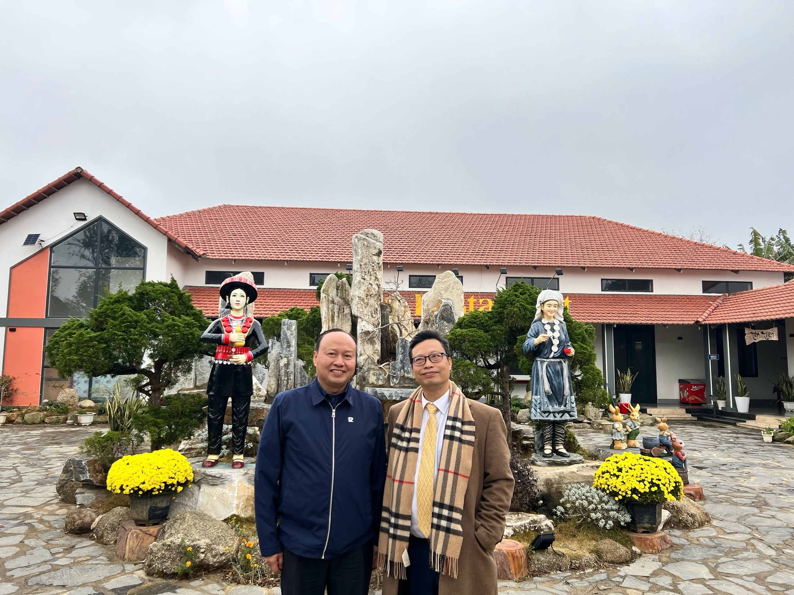 Đ/c Trịnh Đức Hải và ông Hoàng Mạnh Ngọc, Chủ tịch Hiệp hội doanh nghiệp tỉnh Cao Bằng chụp ảnh lưu niệm tại Kolia Organic Farm.