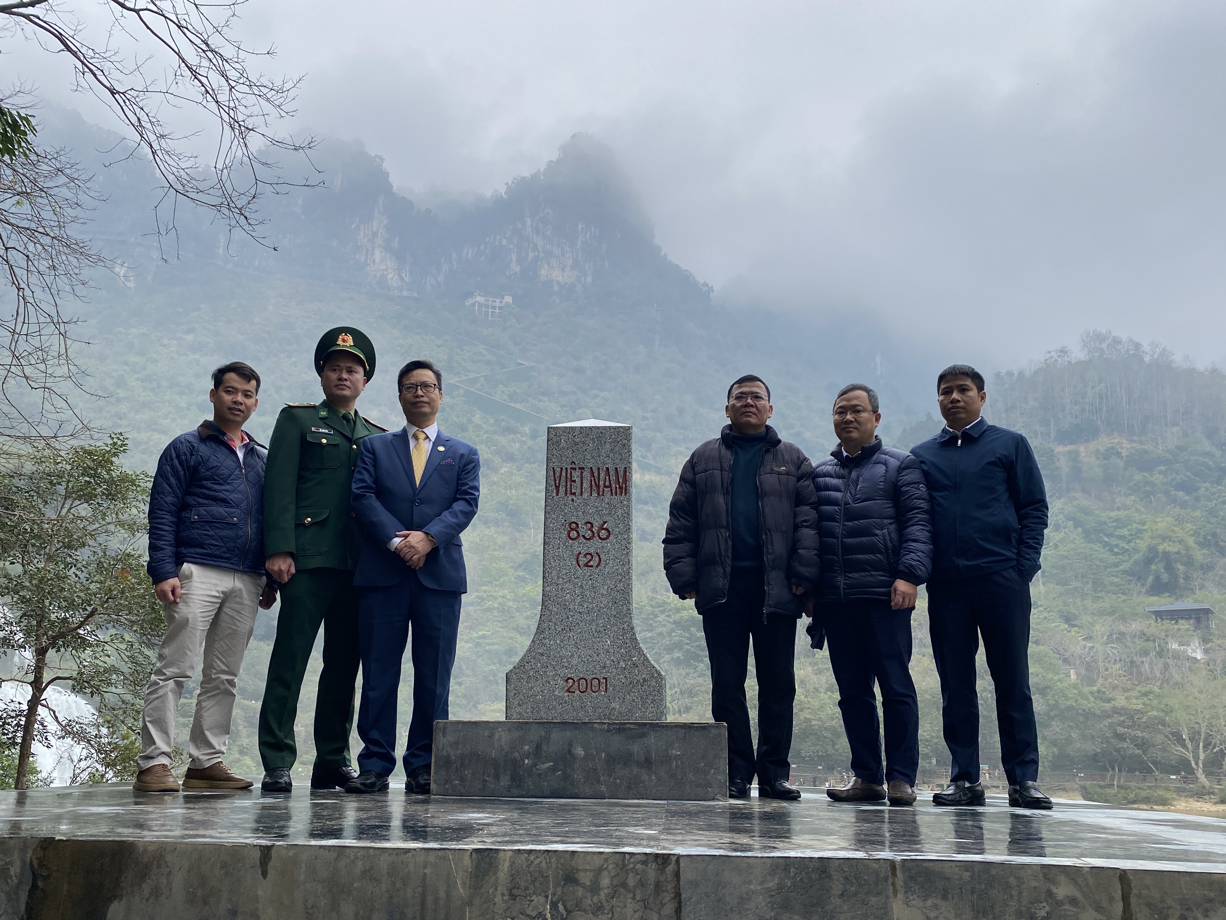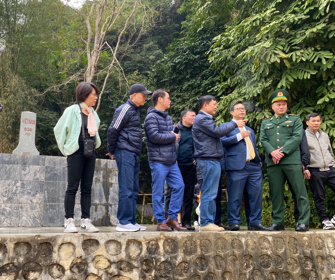 Tiếp đó, đoàn đi khảo sát khu vực mốc 836(2) và Khu cảnh quan thác Bản Giốc (Việt Nam) - Đức Thiên (Trung Quốc); làm việc với Trung tá Bế Anh Việt, Đồn trưởng Đồn biên phòng Đàm Thủy, trao đổi về công tác bảo vệ và quản lý biên giới, tình hình vận hành và đảm bảo an ninh, trật tự tại Khu cảnh quan.