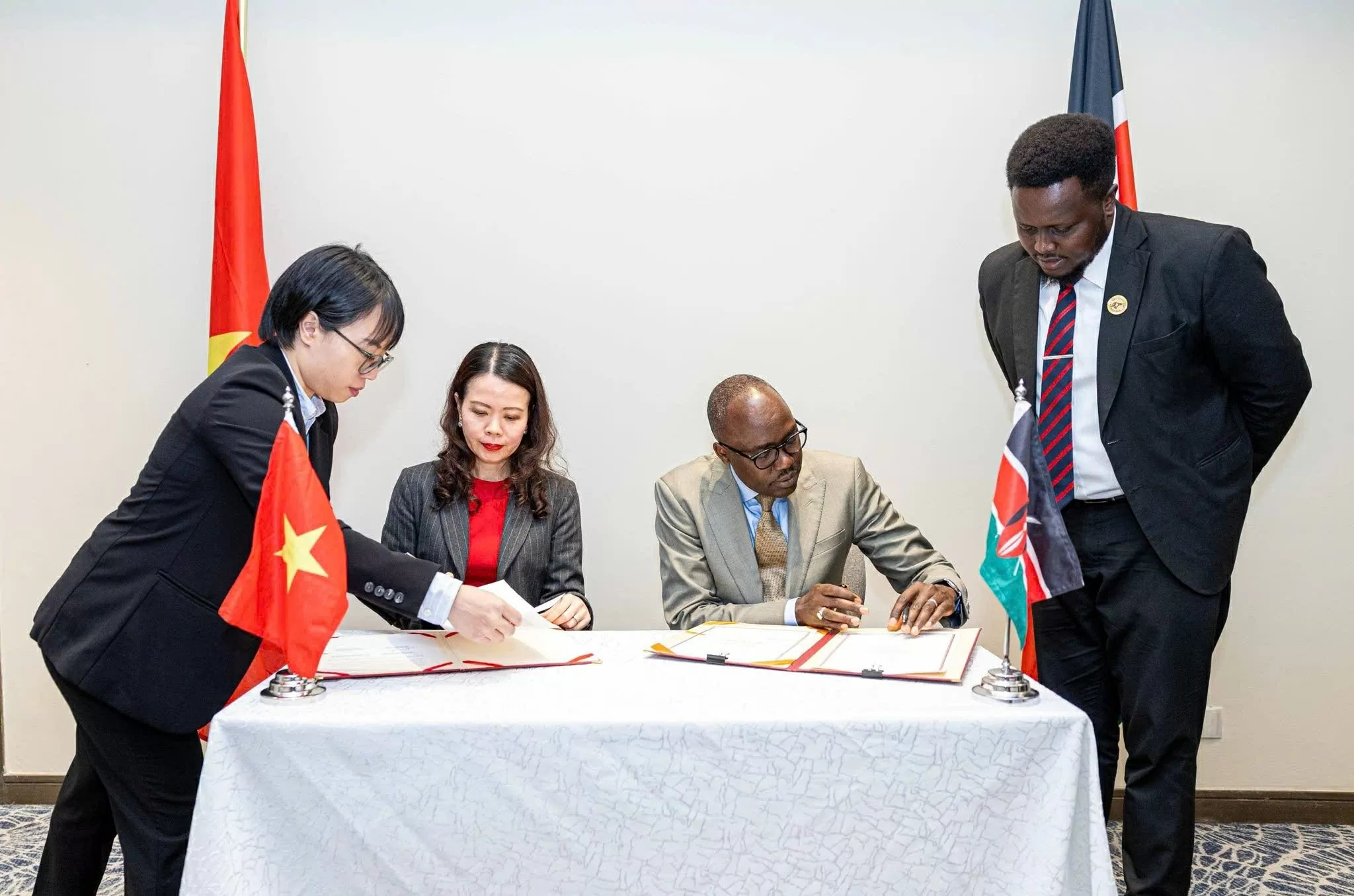 Ngay sau Hội đàm, Thứ trưởng Nguyễn Minh Hằng và Thứ trưởng Ngoại giao và Kiều dân Kenya Abraham Korir Sing’Oei đã ký Bản ghi nhớ thiết lập cơ chế Tham vấn chính trị giữa hai Bộ Ngoại giao./.