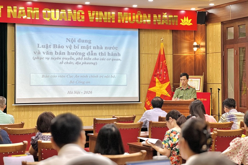Tại hội nghị, Trung tá Lê Quang Trung - Báo cáo viên từ Cục An ninh chính trị nội bộ (Bộ Công an) đã trình bày báo cáo tổng kết thực tiễn thi hành Luật Bảo vệ bí mật nhà nước năm 2018. Qua những dẫn chứng cụ thể, Báo cáo viên đã chỉ ra nhiều bài học kinh nghiệm thiết thực, giúp cán bộ Ủy ban Biên giới quốc gia nhận thức để thực hiện đúng và phòng tránh các nguy cơ sai phạm, lộ lọt trong công tác bảo mật tại cơ quan.