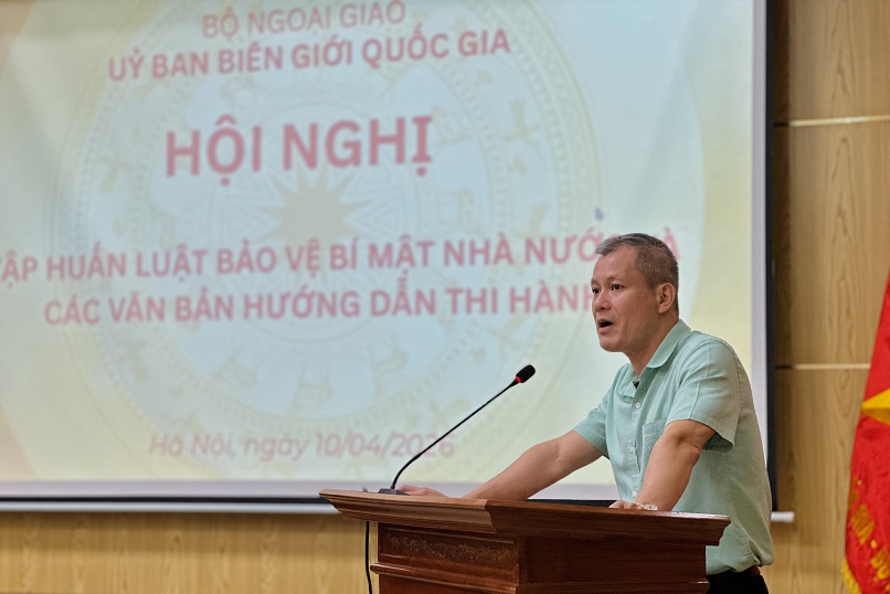 Sáng ngày 10/4/2026, Ủy ban Biên giới quốc gia đã tổ chức Hội nghị Tập huấn Luật Bảo vệ bí mật nhà nước (BMNN) và các văn bản hướng dẫn thi hành nhằm nâng cao nghiệp vụ và cập nhật những quy định mới nhất trong bối cảnh chuyển đổi số quốc gia. Tham dự hội nghị có Chủ nhiệm Uỷ ban Biên giới quốc gia Nguyễn Đăng Thắng, các Lãnh đạo Uỷ ban và toàn thể cán bộ, công chức.