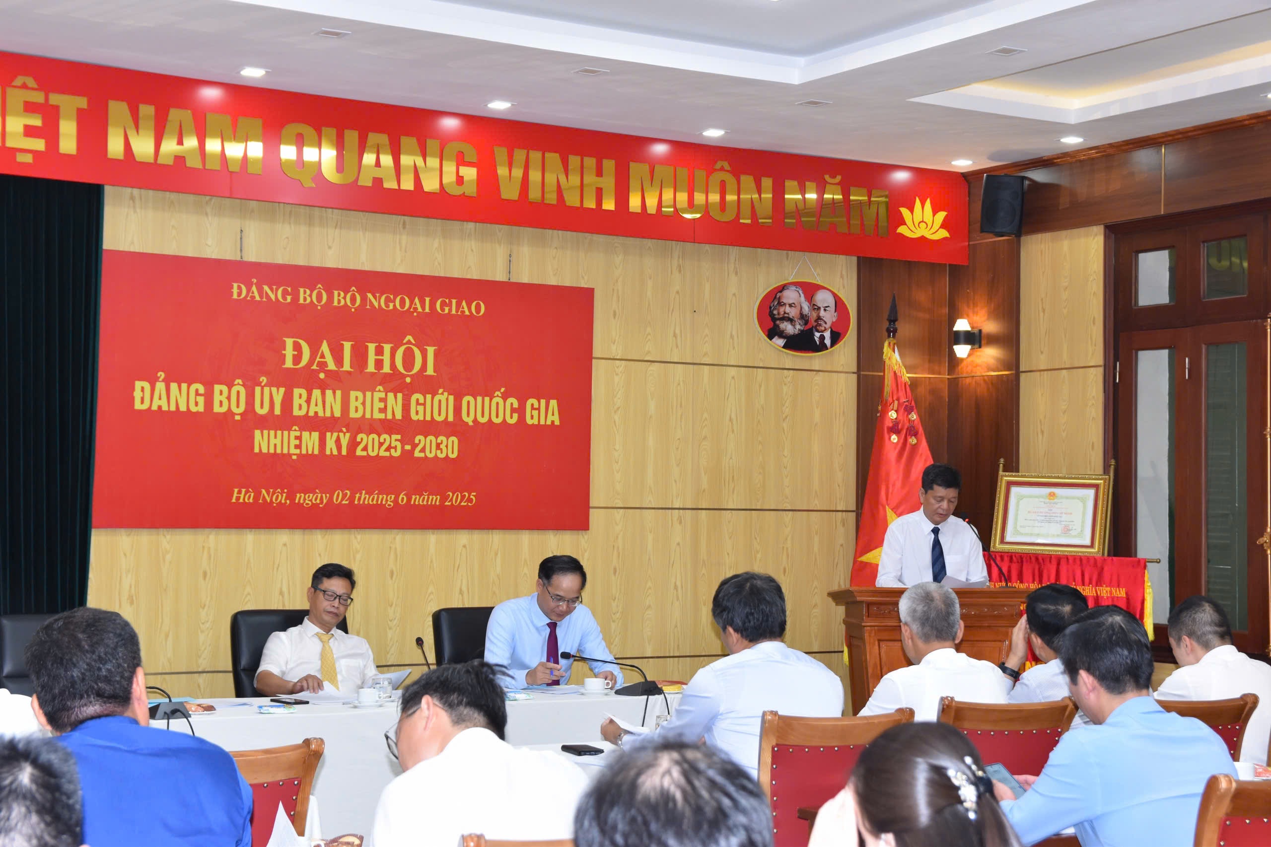 Ngày 2/6/2025, Đảng bộ Ủy ban Biên giới Quốc gia (Bộ Ngoại giao) đã long trọng tổ chức Đại hội nhiệm kỳ 2025-2030. Đại hội có nhiệm vụ tổng kết, đánh giá việc thực hiện Nghị quyết Đại hội nhiệm kỳ 2020-2025; xác định phương hướng, mục tiêu, nhiệm vụ trong nhiệm kỳ mới; bầu Ban Chấp hành Đảng bộ khóa mới và bầu Đoàn đại biểu dự Đại hội đại biểu Đảng bộ Bộ Ngoại giao lần thứ XXIX.
