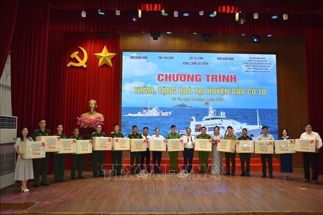 Các đơn vị tại huyện đảo Cô Tô đón nhận quà từ đoàn công tác. Ảnh: TTXVN.
