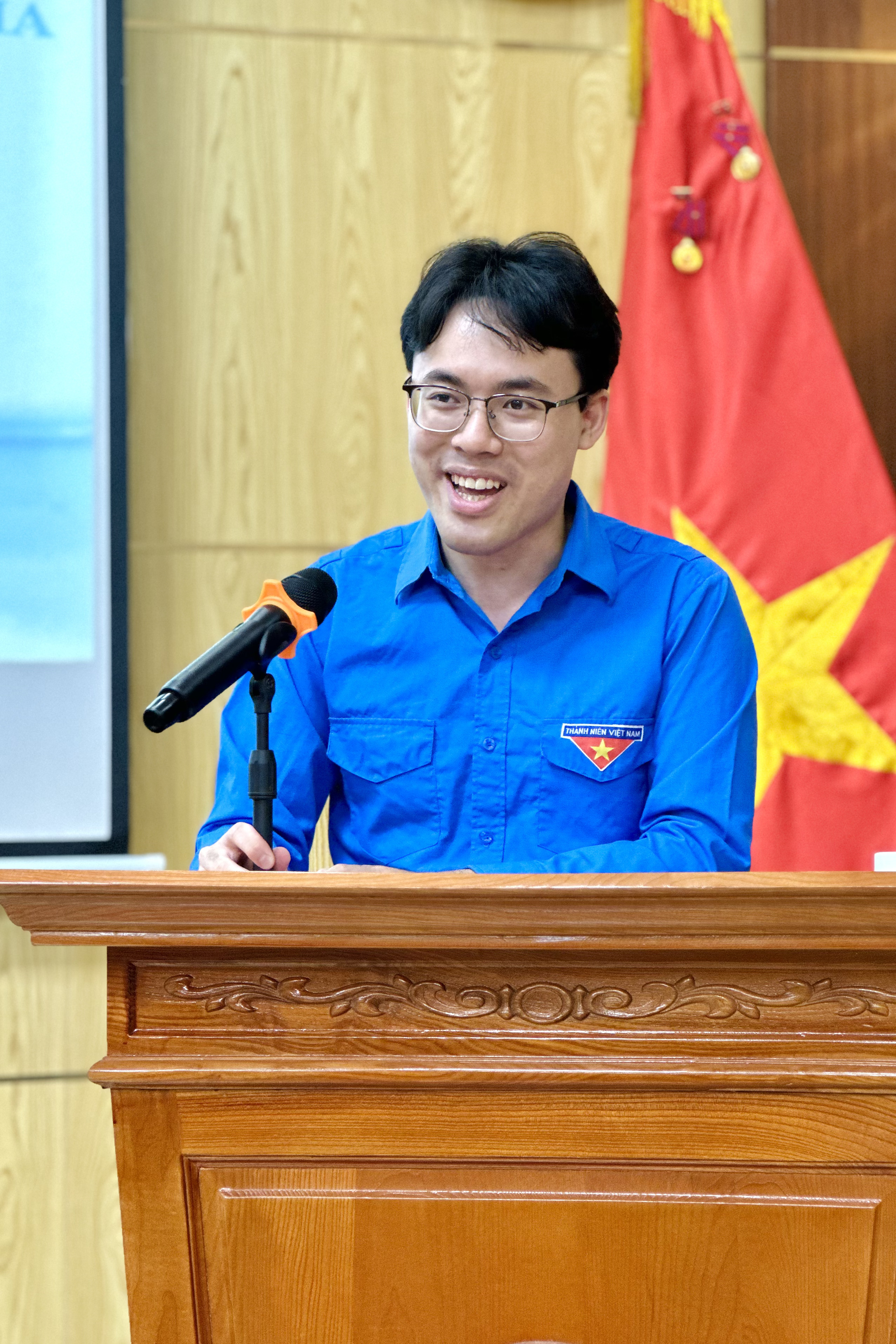 Đồng chí Vũ Quốc Tuấn - Bí thư Ban Chấp hành Đoàn cơ sở nhiệm kỳ 2025 - 2030 phát biểu nhận nhiệm vụ mới.