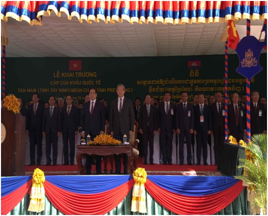 Phát biểu tại buổi Lễ, Thủ tướng Vương quốc Campuchia Hun Manet nhấn mạnh, Lễ khánh thành chính thức đưa vào vận hành cửa khẩu quốc tế Tân Nam - Meun Chey là minh chứng cho thấy sự mật thiết trong quan hệ hữu nghị và hợp tác giữa Campuchia và Việt Nam. Qua đó đã và đang góp phần biến khu vực biên giới hai nước trở thành biên giới hòa bình, ổn định, thúc đẩy mạnh mẽ giao thương hàng hóa, du lịch, dịch vụ…, phục vụ ngày càng tốt hơn cuộc sống của người dân hai bên biên giới.